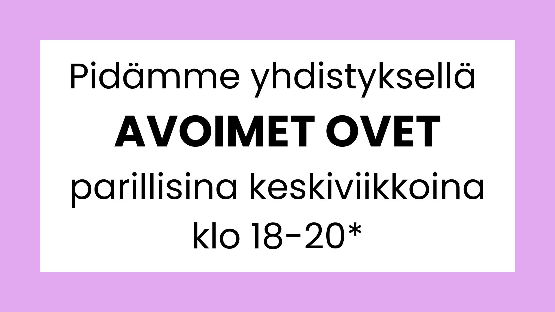 *Avoimet ovet järjestetään lokakuun alusta huhtikuun loppuun. Toukokuusta syyskuuhun avoimet ovet ovat kesätauolla.